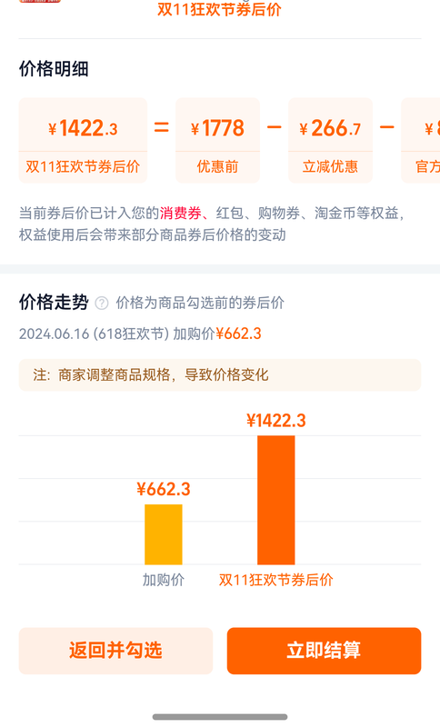 guanhaoran OP @klo424 是这样的,这个是个衣服的价格 24 年 618 加入购物车的。我还特意看了下其他商品,大概三四月份,有的便宜有的贵了。看的都是消费之类的商品,不是那种买了保值之类的东西