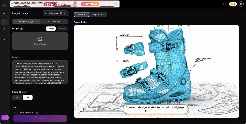 欢迎使用 ai seedream 5.0 —— 从灵感到成片,都可在同一平台完成。输入一句话,即可生成优质图片、视频与文案,让创作摆脱复杂流程,人人都能快速上手。