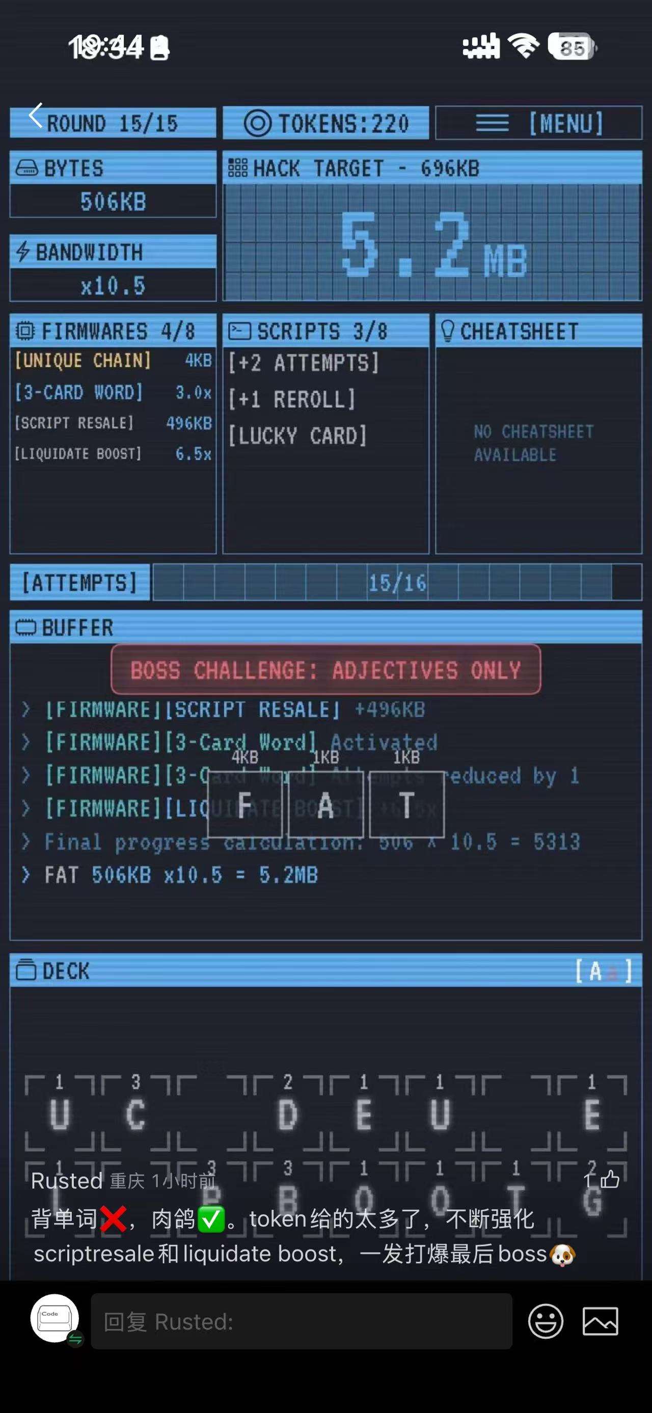 这是一个复古终端风格的 Rougelite 拼写游戏,核心玩法就是拼出得分高的单词,在有限次数内完成关卡分数。有很多道具可以通过完成一定条件来解锁,购买后可以降低游戏难度和增加分数。