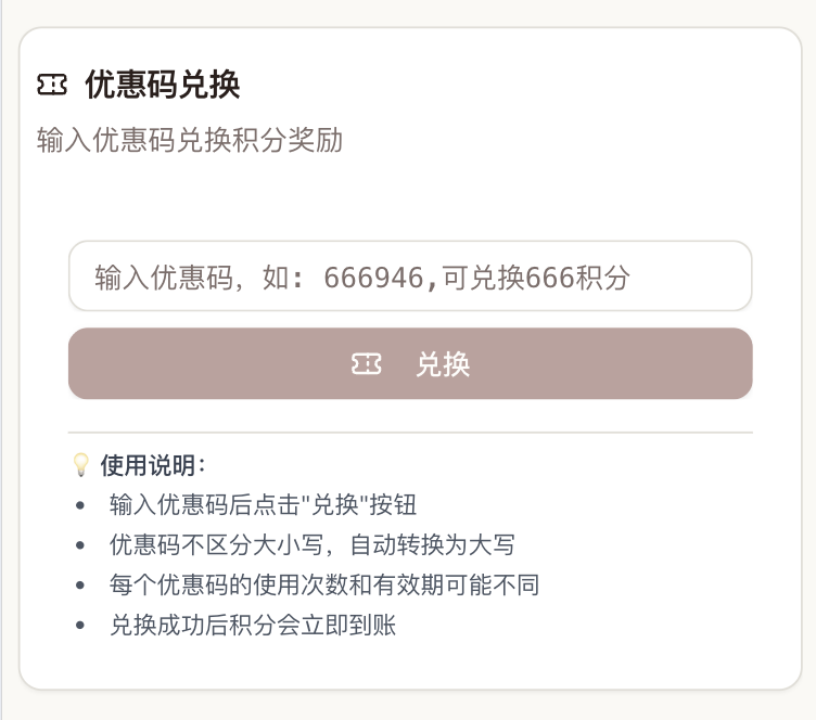 🎁 兑换码:YYDS2026 可以兑换 2000 积分,用来体验站内功能。 登录后去积分中心对话积分