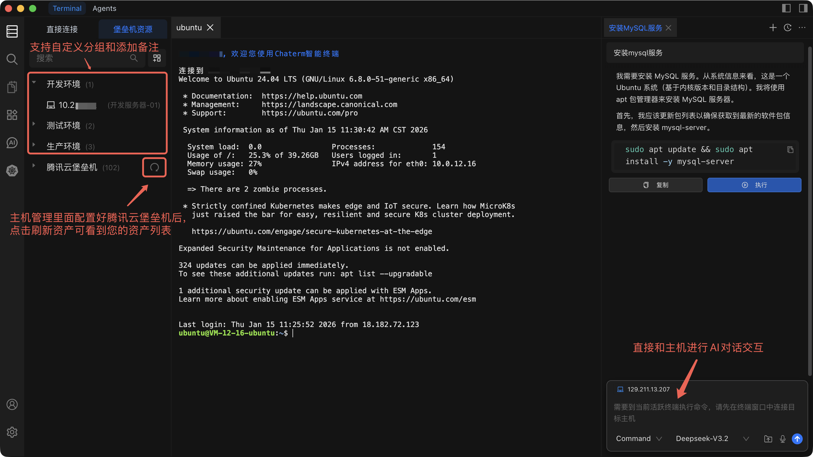 我们从最开始资产管理和Agent功能做起,到如今涵盖以下几大功能模块,Chaterm 变得越来越丰富。